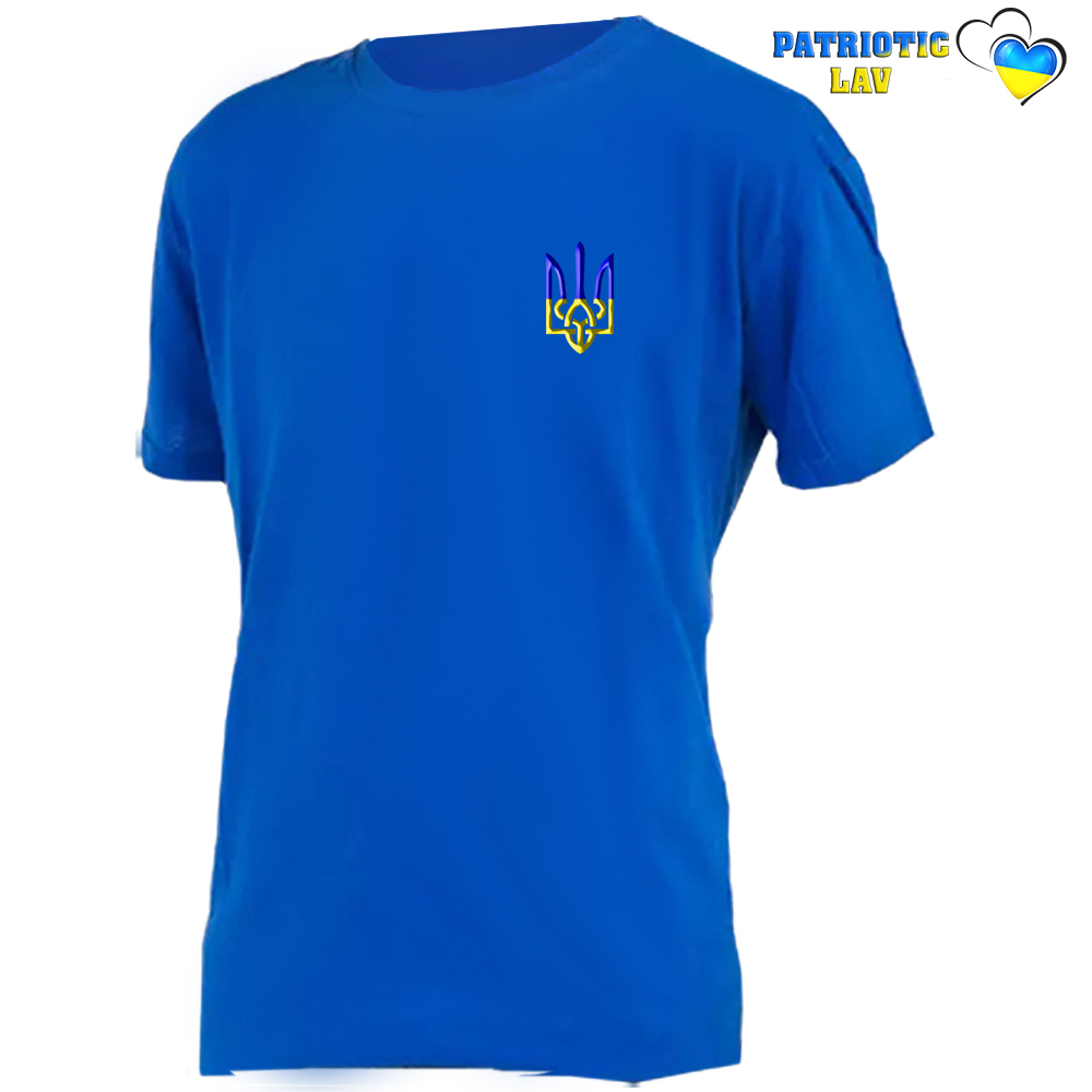 Футболка дитяча синя "кольровий герб з ліва"