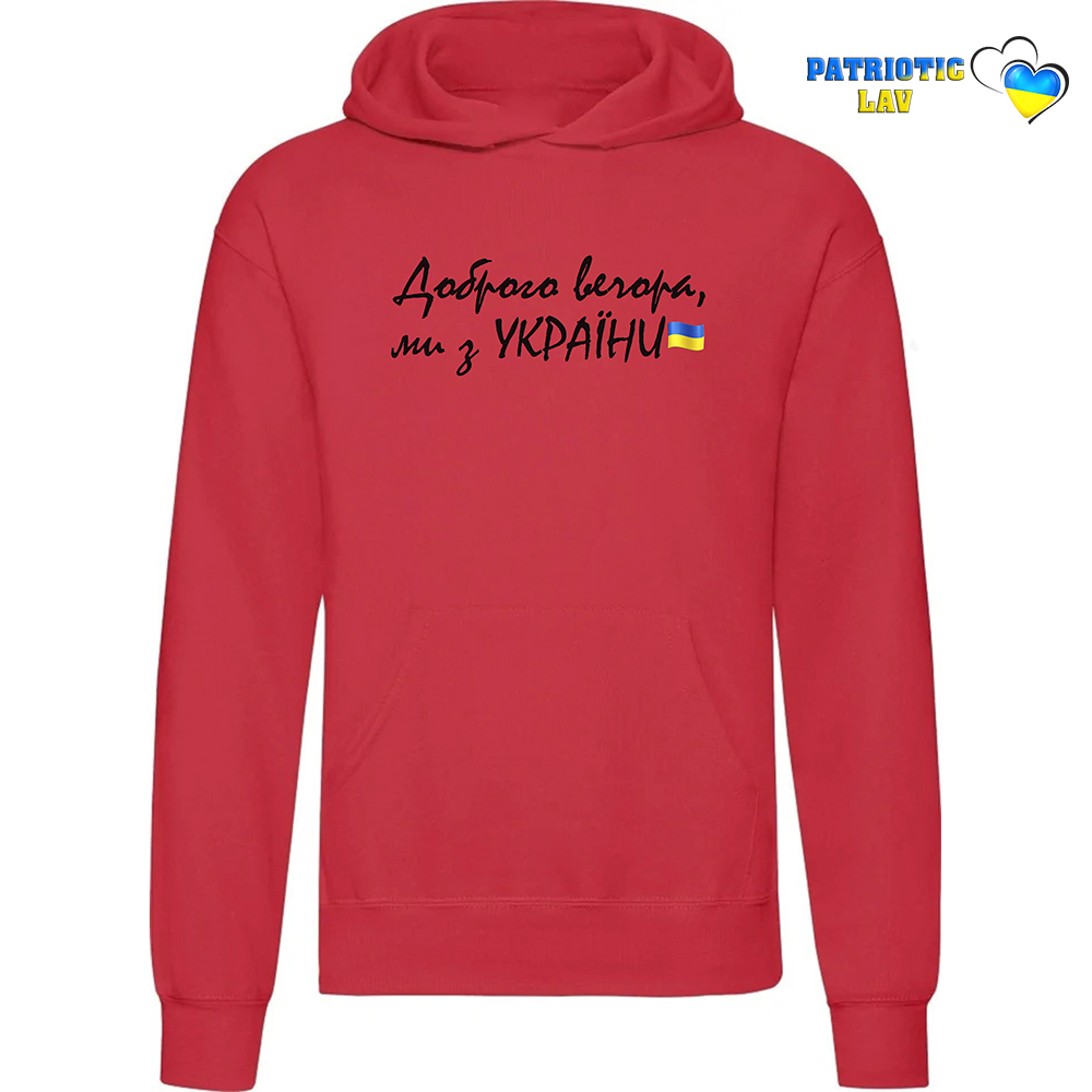 Худі чоловічий червоний "Доброго вечора, ми з України чорний"
