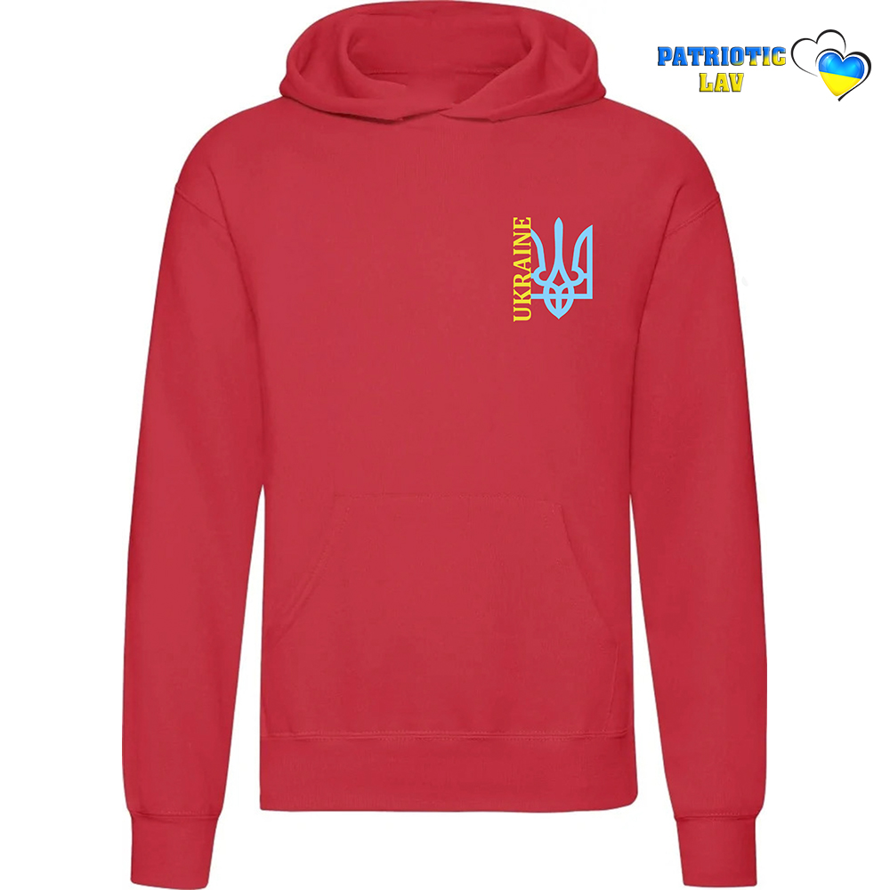 Худі чоловічий червоний "Ukraine жовтий та блакитний герб з ліва"