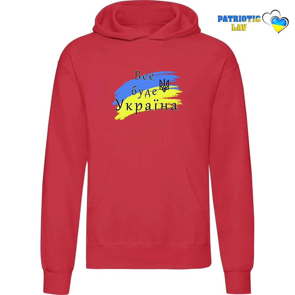 Худі чоловічий червоний "все буде Україна на прапорі"