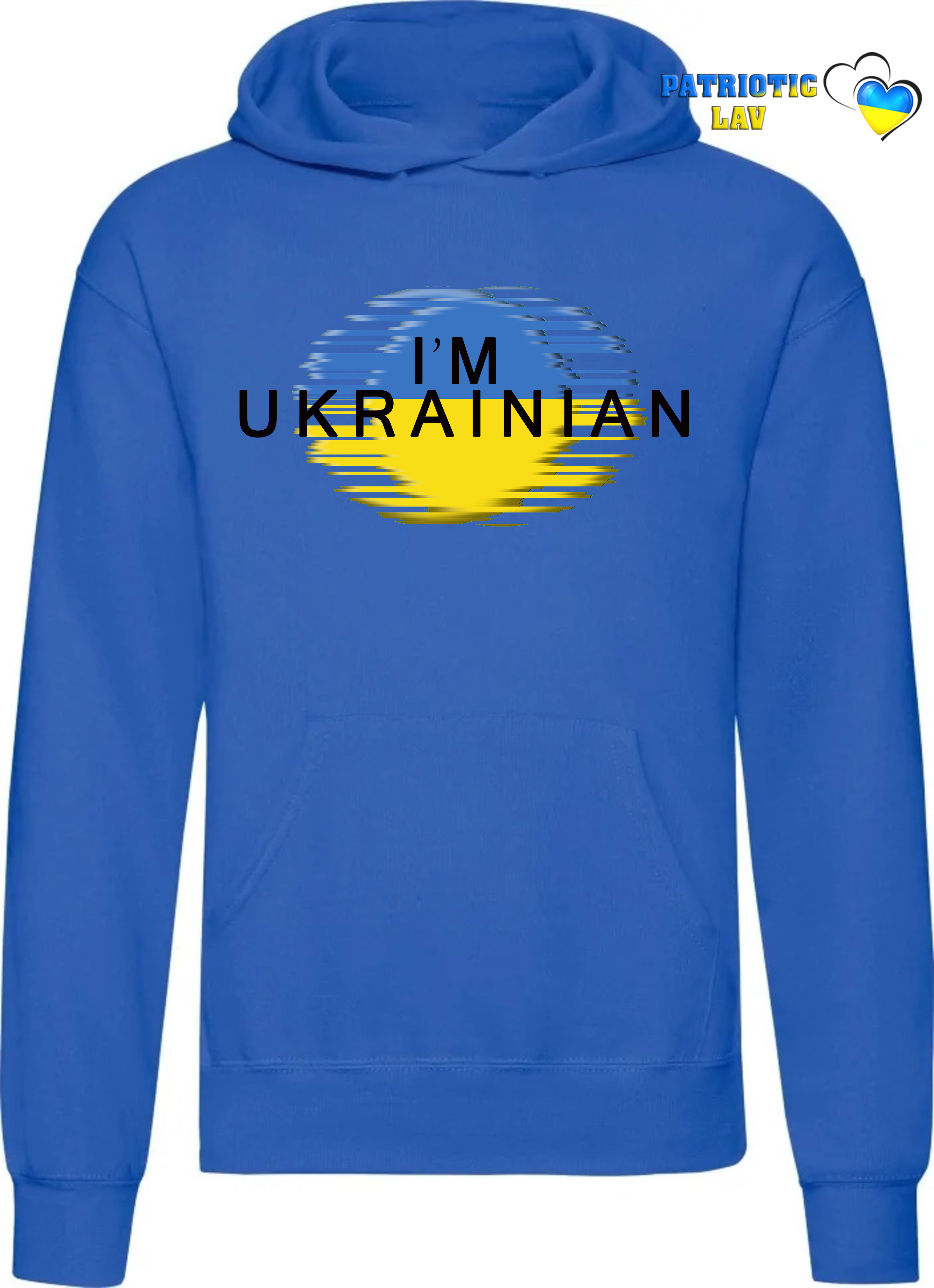 Худі чоловічий синій "жовто-блакитні кола та I'm Ukrainian"