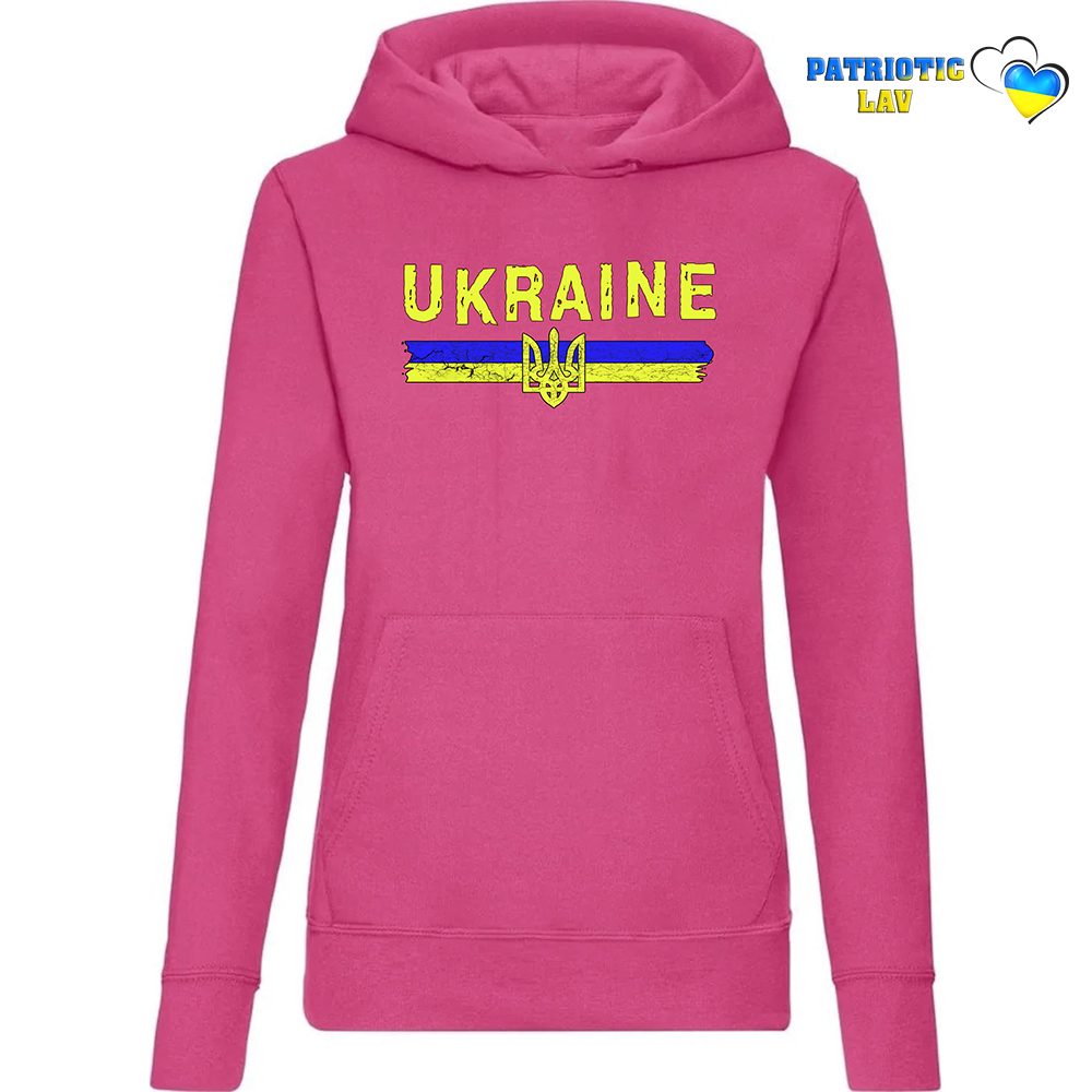 Худі жіночий рожевий "Ukraine жовтий та герб жовтий на прапорі"