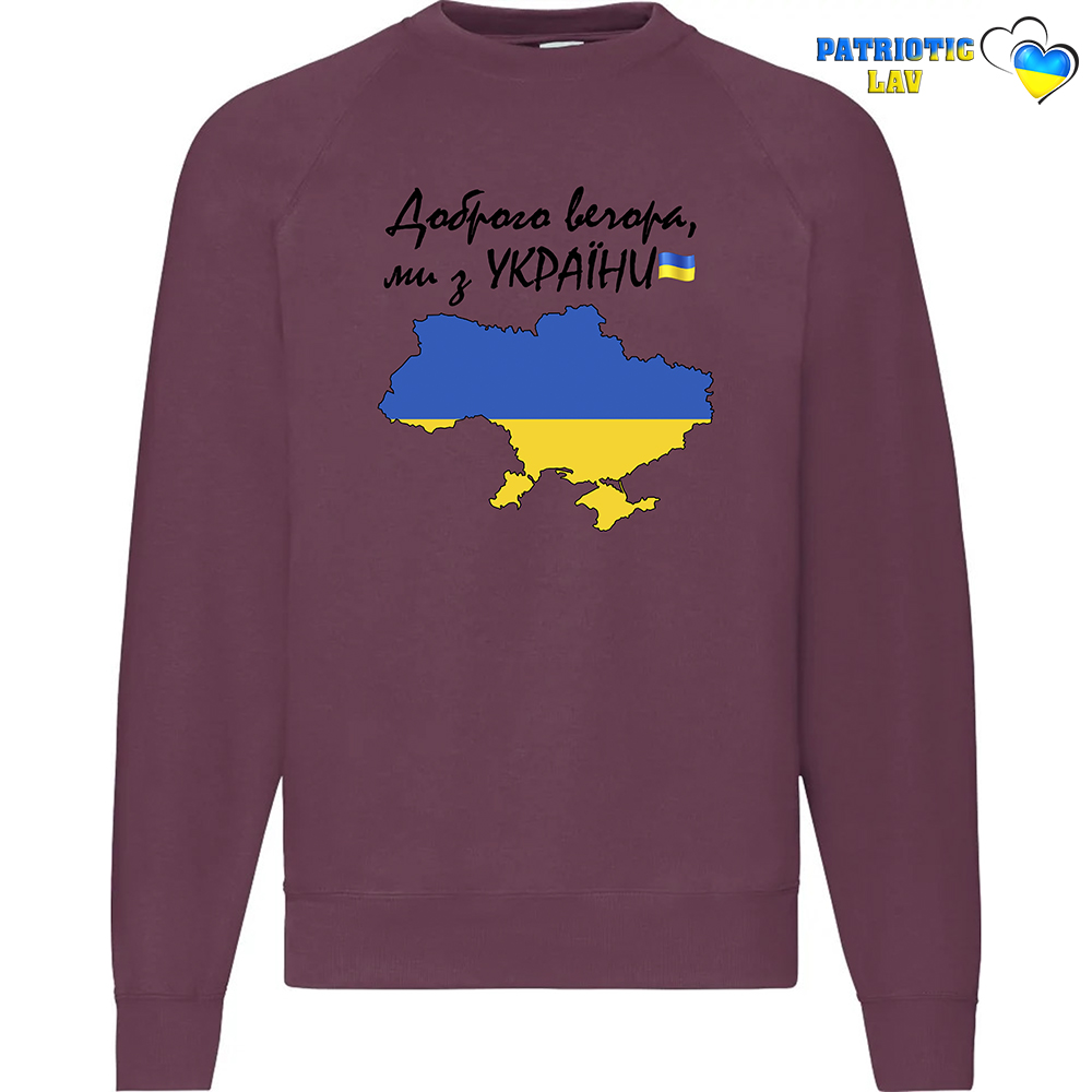 Світшот чоловічий бордовий "Доброго вечора, ми з України білий та великий герб"