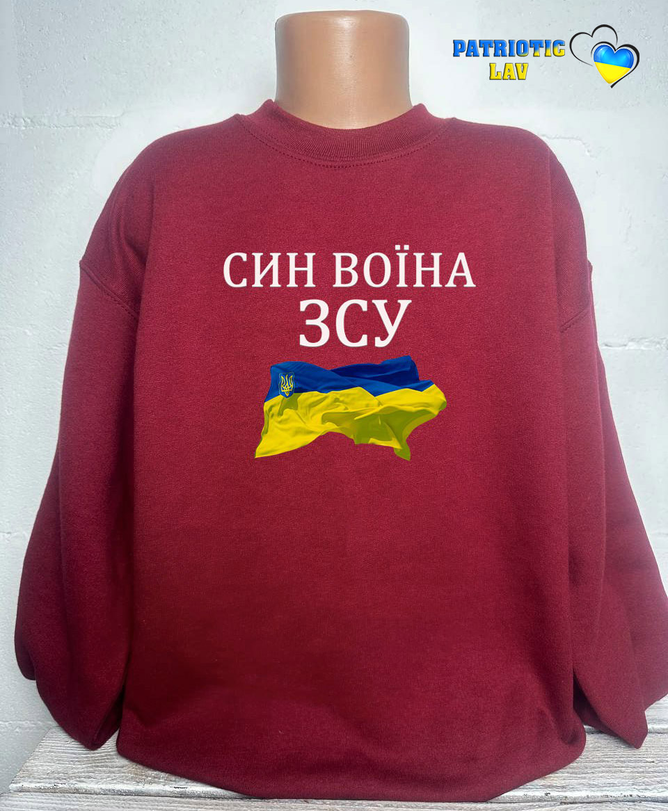 Світшот дитячий бордовий "Син воїна ЗСУ прапор"