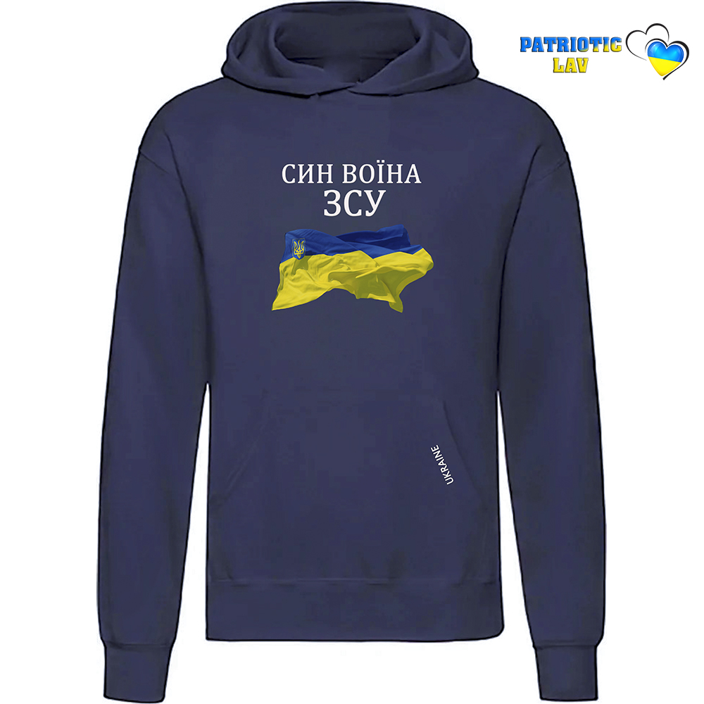 Худі чоловічий темно-синій "син воїна ЗСУ та прапор"