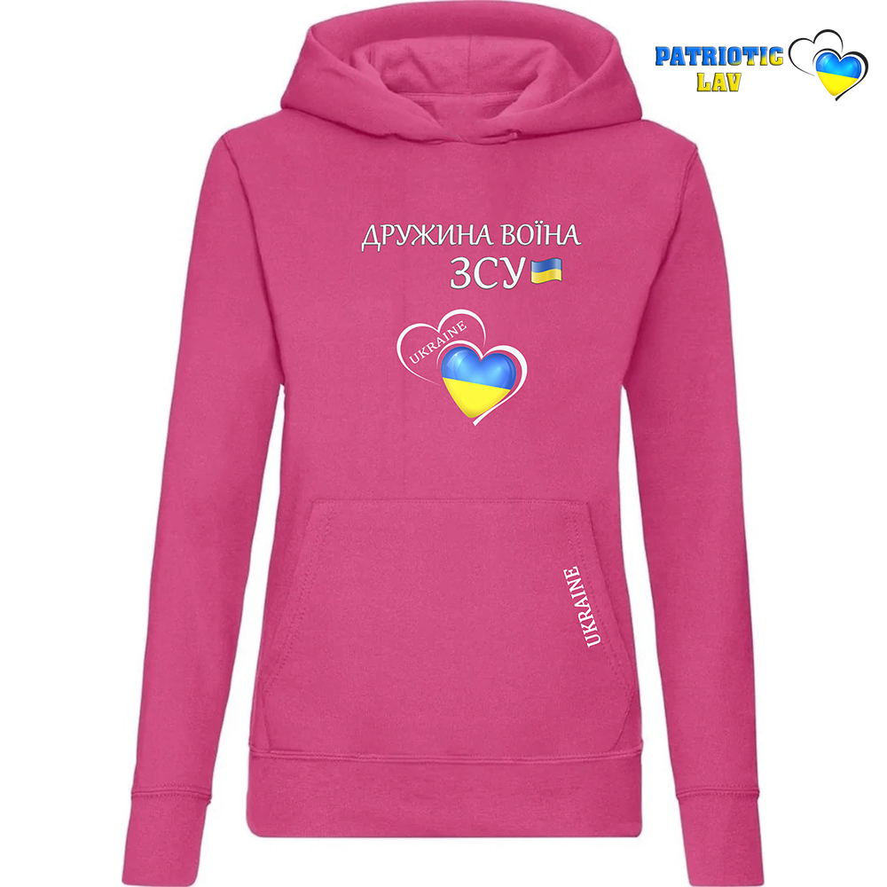 Худі жіночий рожевий "Дружина воїна ЗСУ та подвійне серце"