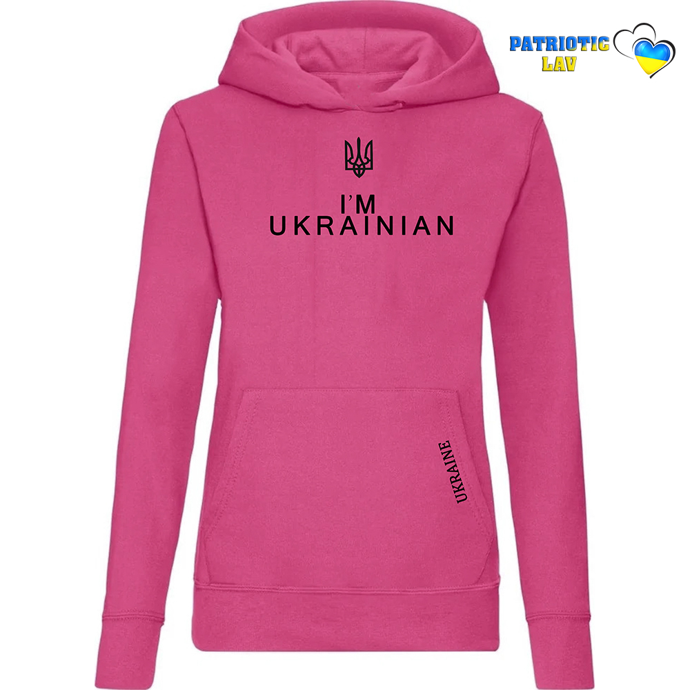 Худі жіночий рожевий "маленький чорний герб та I`m UKRAINIAN"