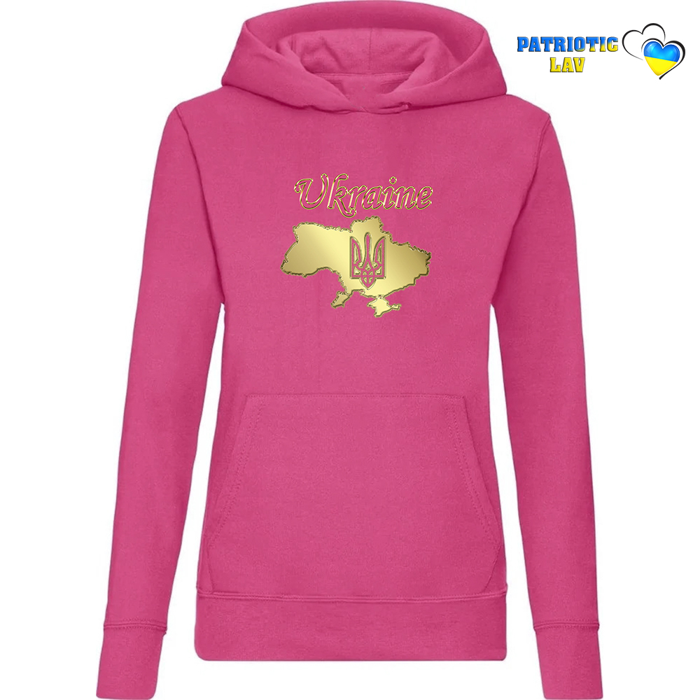 Худі жіночий рожевий "Ukraine та мапа з гербом золоті"