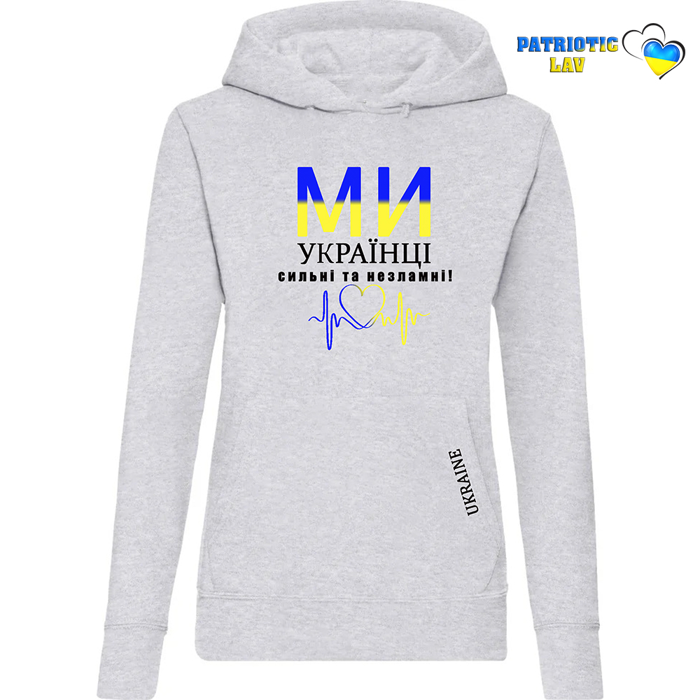 Худі жіночий сірий "Ми українці сильні та незламні"