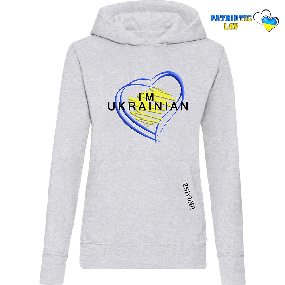Худі жіночий сірий "серце та I'm Ukrainian"