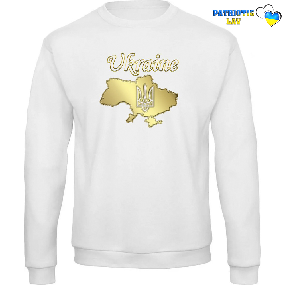 Світшот чоловічий білий "Ukraine та мапа з гербом золоті"