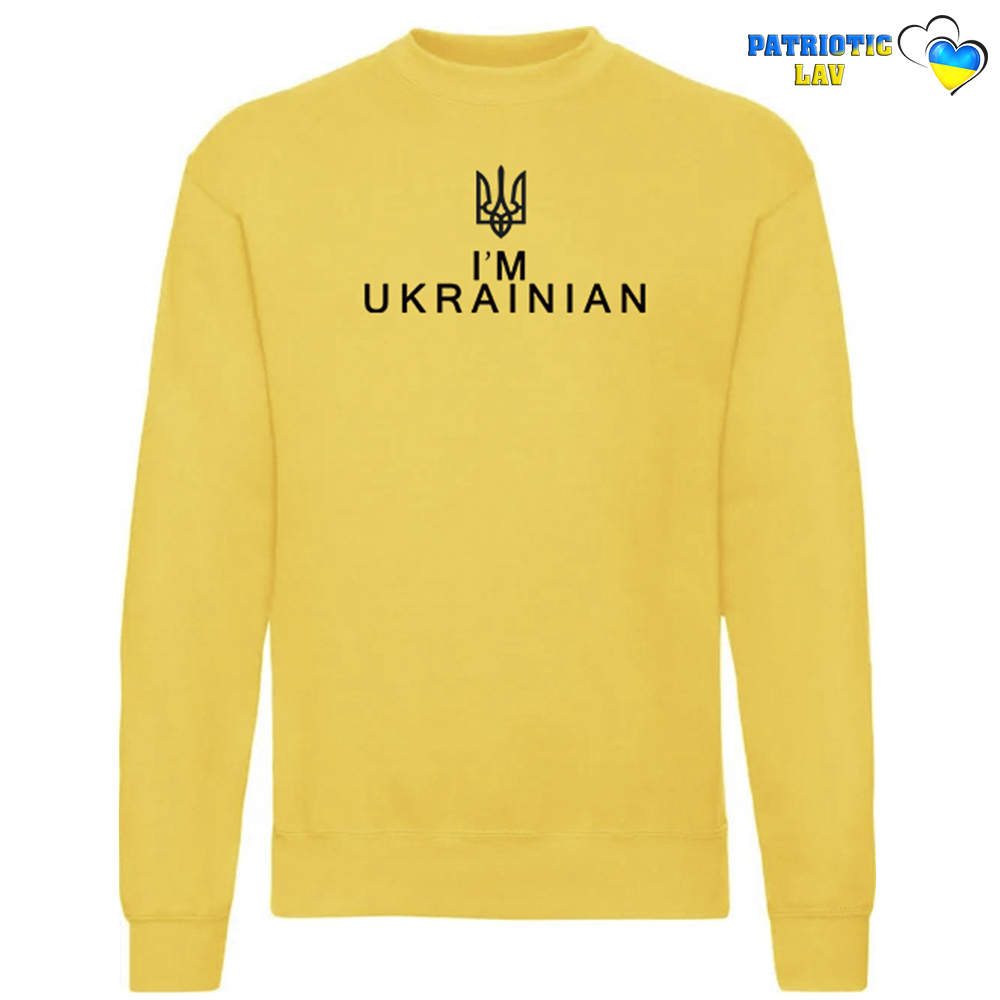 Світшот чоловічий жовтий "маленький чорний герб та I'm Ukrainian"